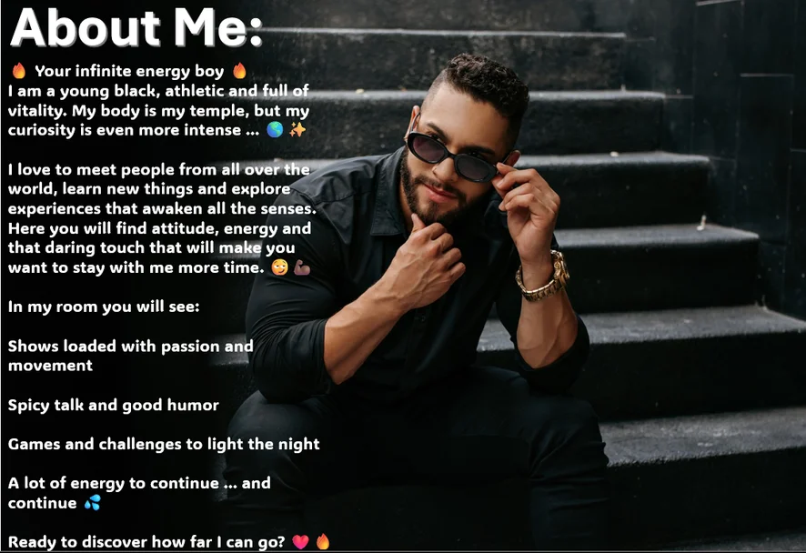 도기 스타일, 스팽킹, 스트립쇼, 에로틱 댄스, 펌프, 딜도 또는 바이브레이터, 핸드잡, 음란한 대화, 샤워, 사정, 풋 페티시, 플렉싱, 스모킹, 굴욕, 섹스 기구, 자위, 오일 쇼, SPH(작은 음경 능욕), 오르가즘, 재갈, 자위행위 지침, 애널 기구, CEI(정액 먹기 교육)